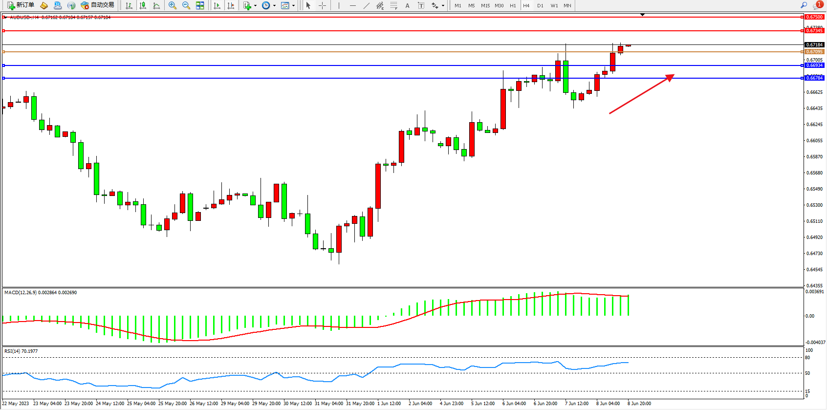 阻力位:0.67345 0.67500