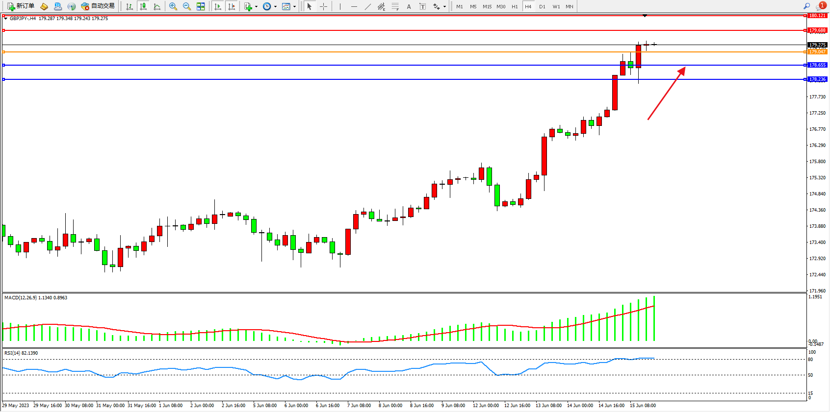 交易策略:179.047上方看涨,目标179.688 180.121