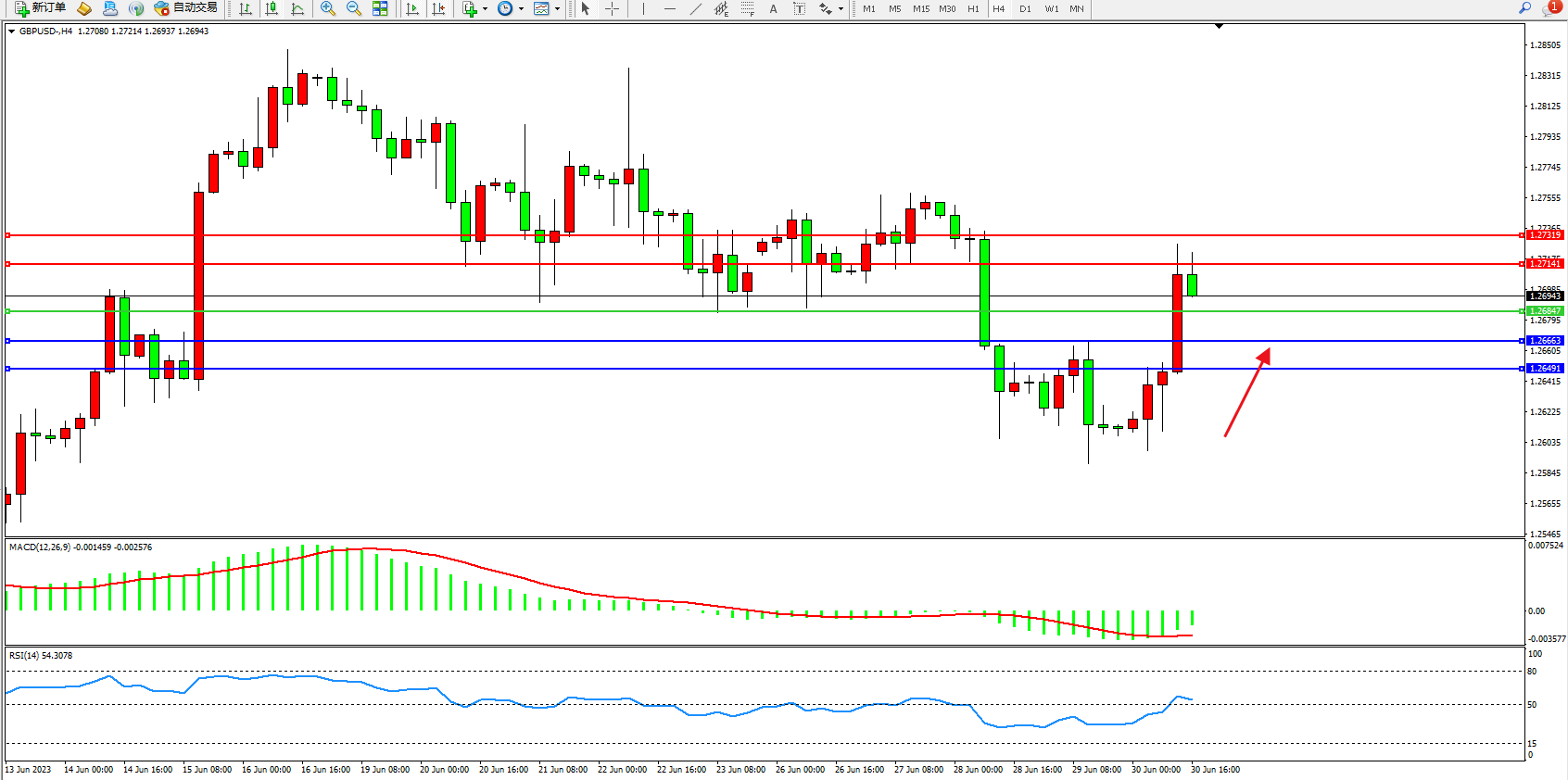 英镑美元GBPUSD ——4小时K线图显示: