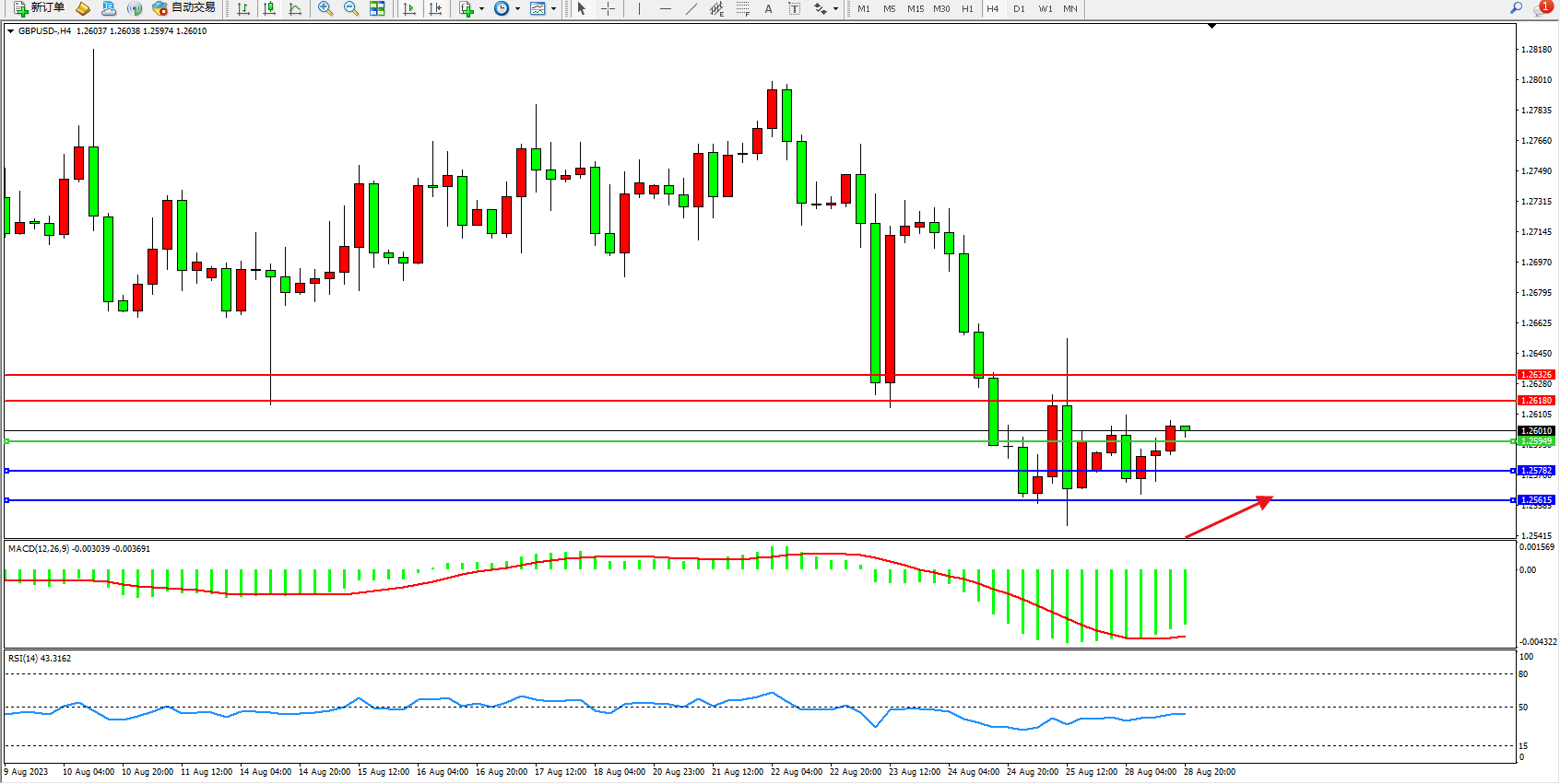 英镑美元GBPUSD ——4小时K线图显示: