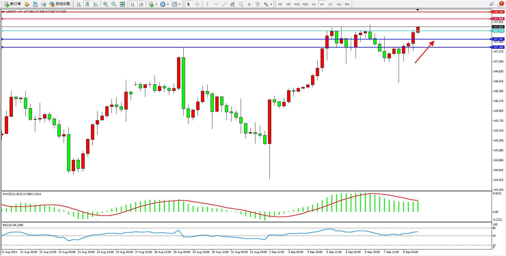阻力位:147.988  148.140