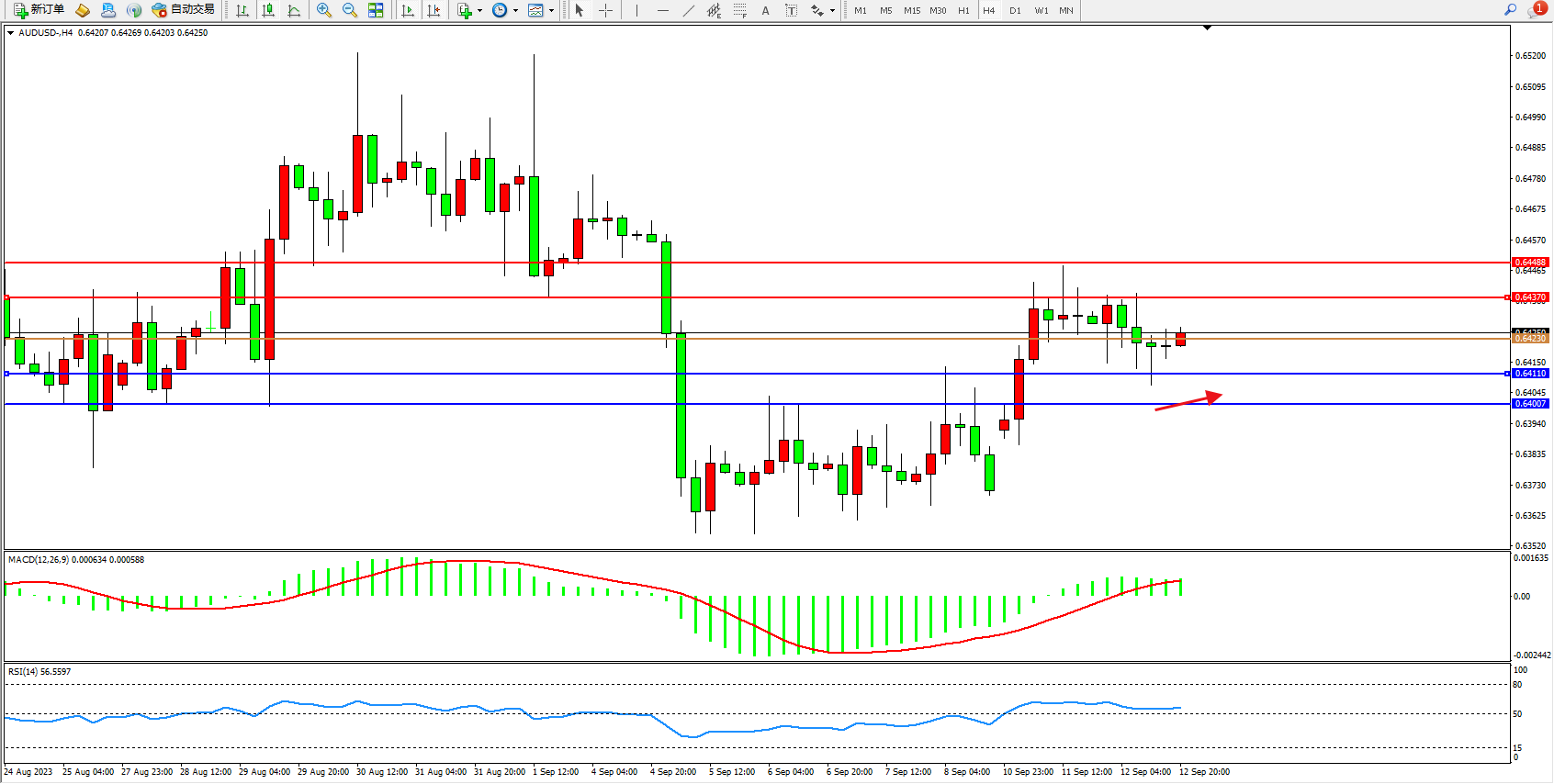 交易策略:0.64230上方看涨,目标0.64370 0.64488