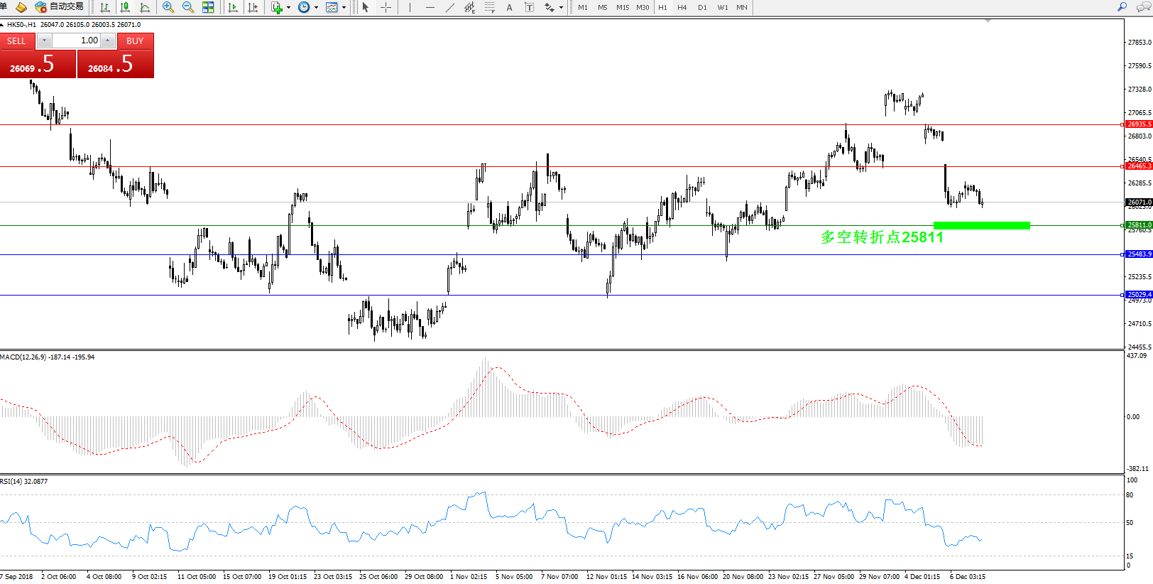 交易策略:25811上方看涨,目标26465.3、26935.5