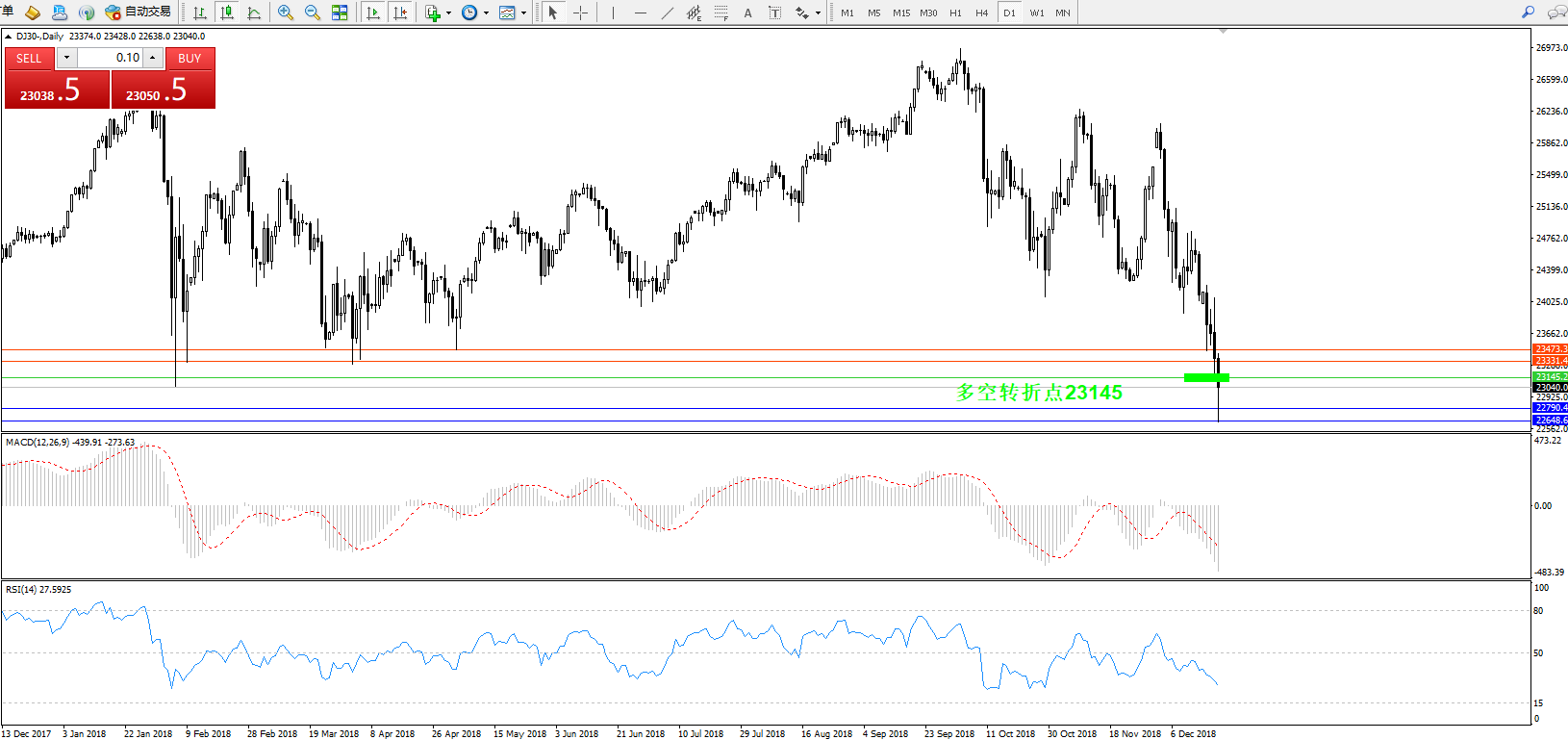美股周四收盘大幅下跌,道琼斯工业平均指数收跌463.52点,跌幅1.99%,报22860.14点;因美联储计划继续缩表,美国政府部分关门的威胁助燃投资者的不安情绪。美联储认为经济高于趋势水平,进而继续收紧货币政策。金融条件趋紧,这可能是必然的事,如果美国经济开始走软,美联储绝对会暂停加息步伐。
