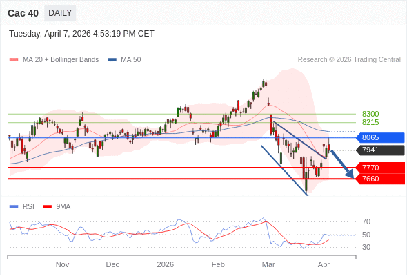 在 8065 之下,看跌,目标价位为 7770 ,然后为 7660 。