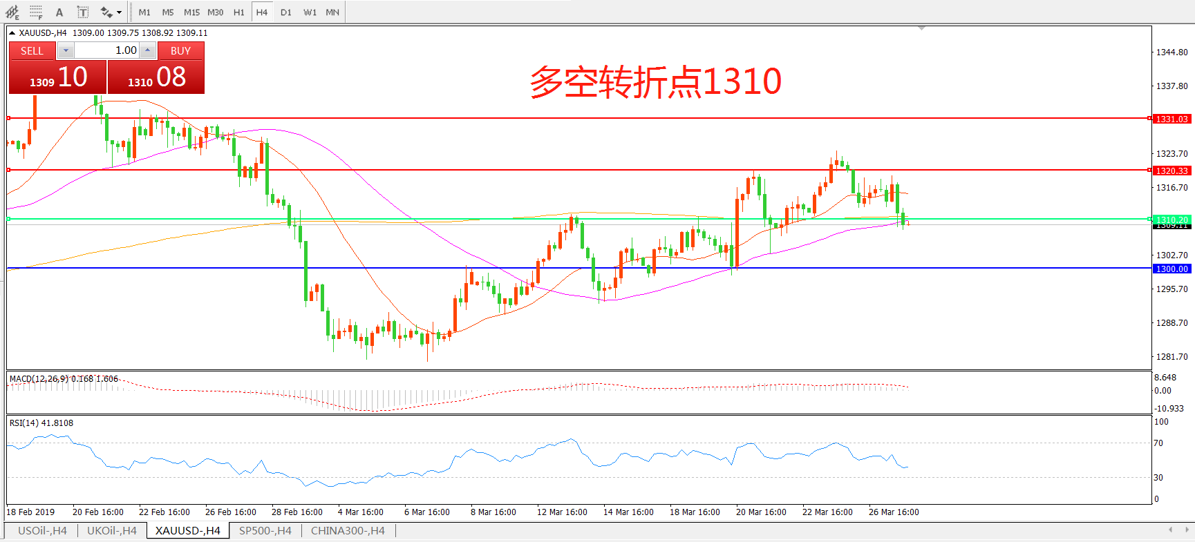 多空转折点:1310.00
