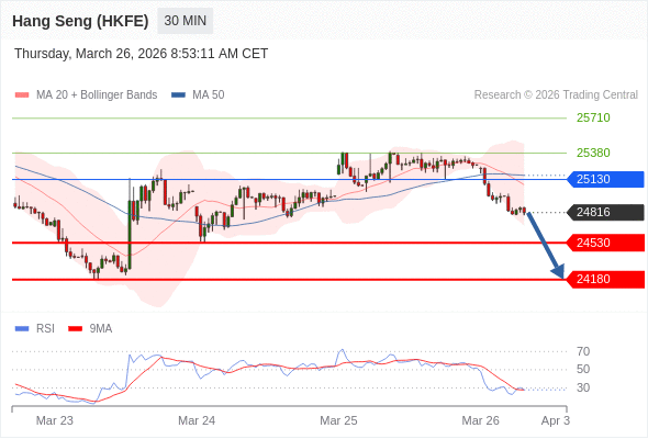 在 25130 之下,看跌,目标价位为 24530 ,然后为 24180 。