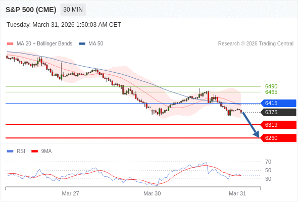 在 6415 之下,看跌,目标价位为 6319 ,然后为 6260 。