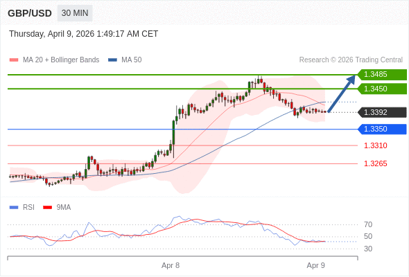 在 1.3350 之上,看涨,目标价位为 1.3450 ,然后为 1.3485 。