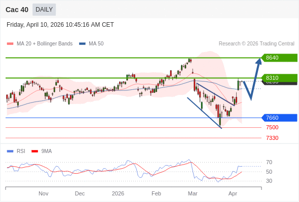 Cac 40 短线: 在7660之上,看涨。