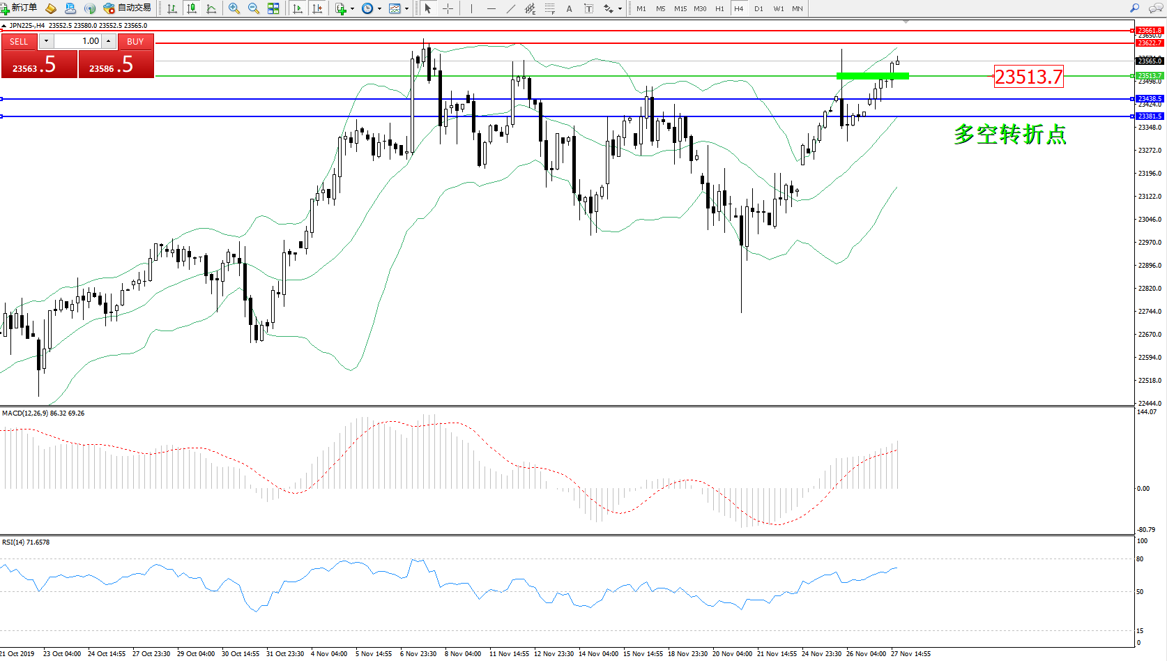 日经225指数1127日(周三)收盘上涨69.18点,涨幅0.30%,报23442.50点。日本央行委员樱井真:国际货币基金组织建议在区间内设定价格目标是一个想法,但我们的目标是实现2%的通胀率,目的是达到物价目标,尽管需要一点时间,目的是达到物价目标,尽管需要一点时间,当前不是需要积极采取行动的时机,收益率曲线已经维持平稳,如果经济面临快速严重的下滑,日本央行可能需要动用所有可用的工具,如果经济下滑幅度较小,央行可能没有必要布局所有可用的工具,央行应当使用何种工具来抵御冲击取决于当前的经济发展状况.