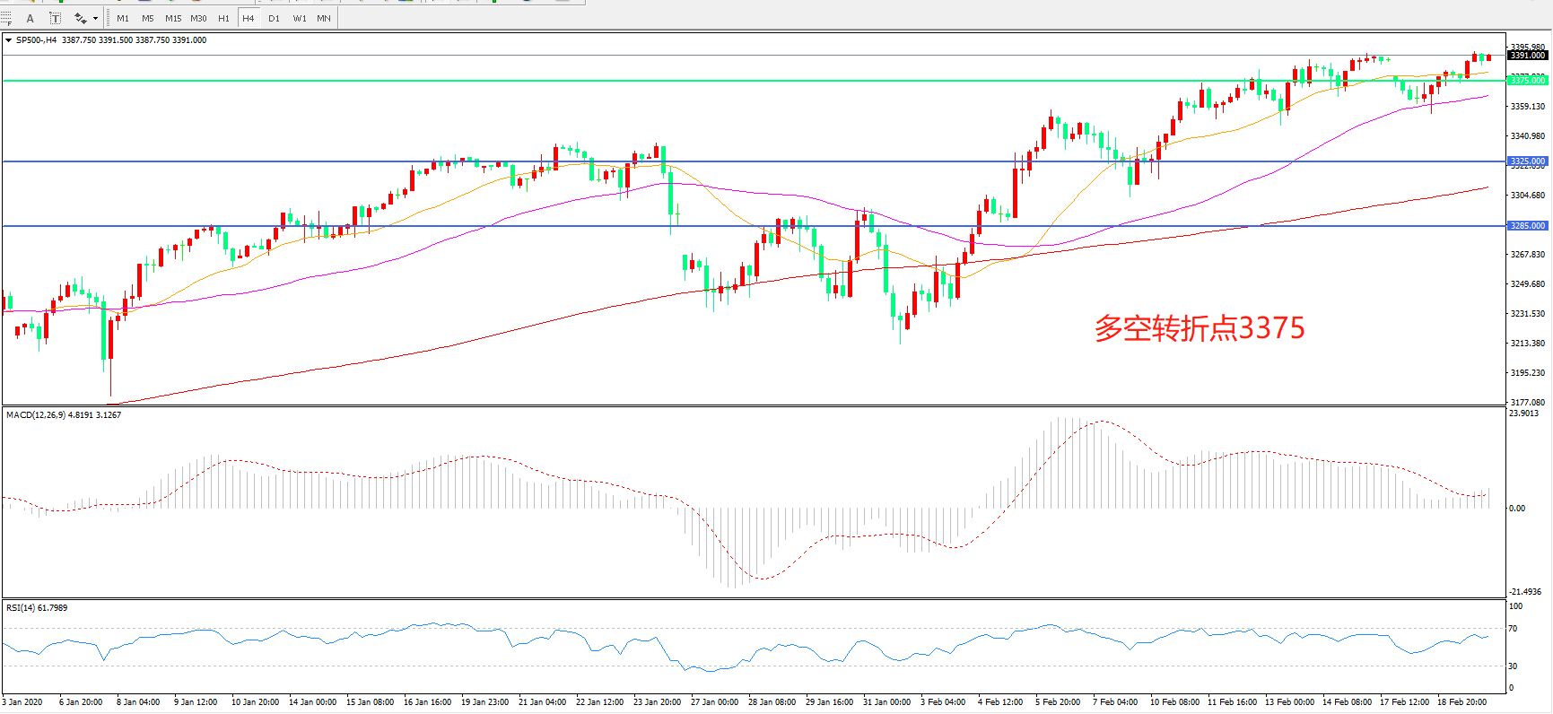 多空转折点:3375.00