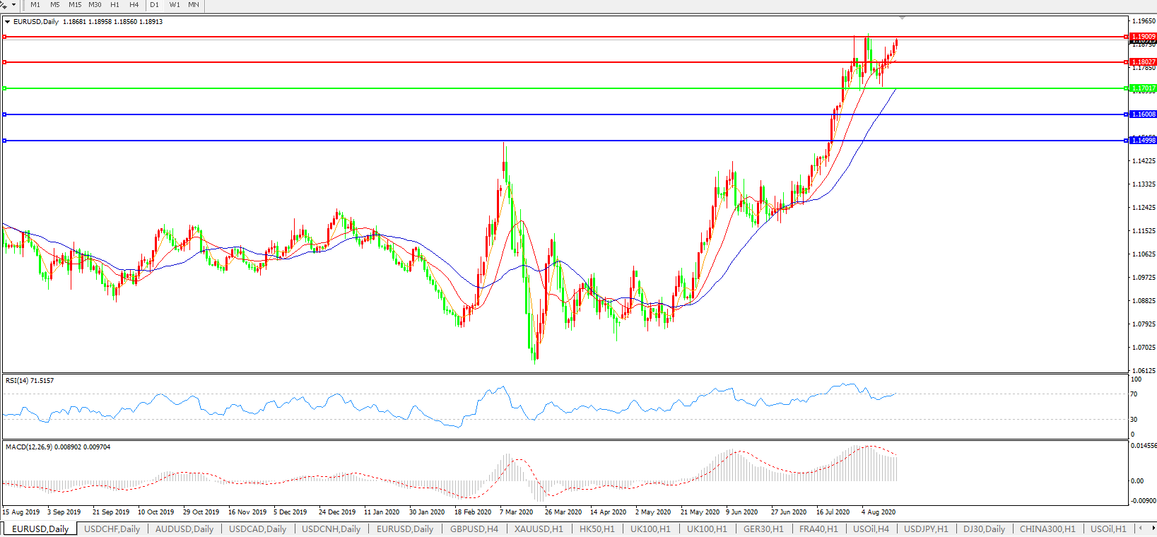 欧元兑美元EURUSD 日线图: