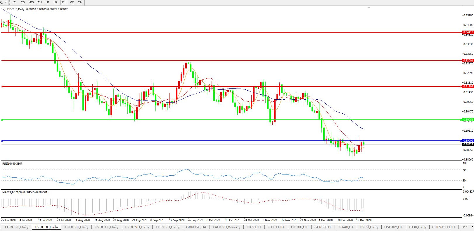 病毒担忧盖过刺激法案,美元兑瑞郎窄幅上攻