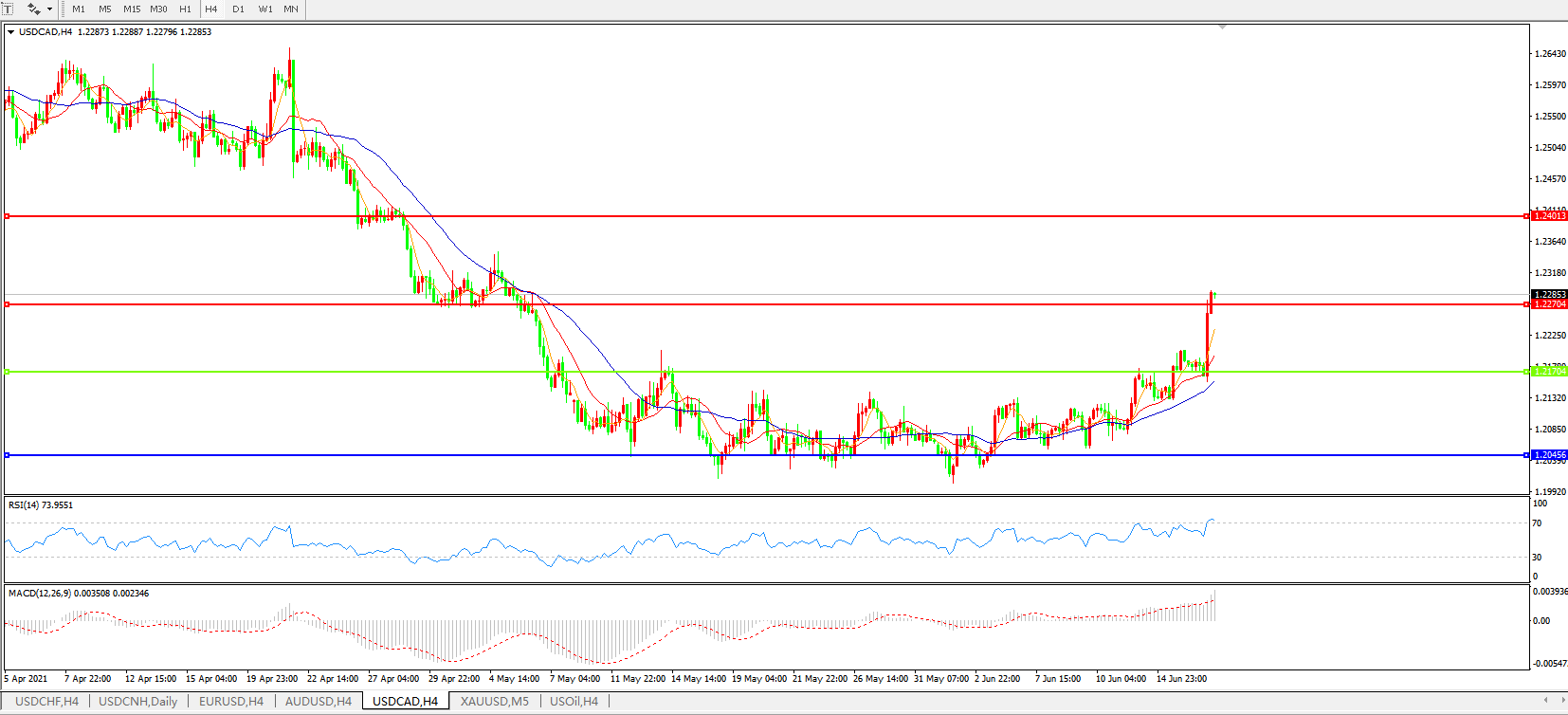 美元兑加元USDCAD    4小时图: