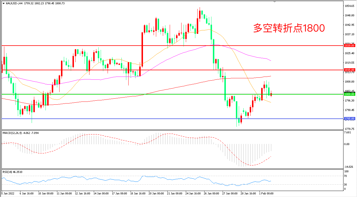 交易策略:在1800.00之上看涨,目标1815.00       1830.00