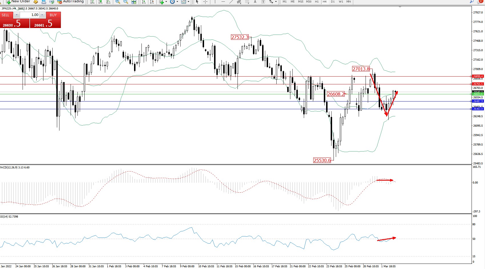 日经225指数3月2日(周三)收盘下跌452.22点,跌幅1.68%,报26392.50点。日本首相岸田文雄:日本首相岸田文雄在众议院预算委员会会议上称,将在一周内对白俄罗斯实施制裁。考虑到俄罗斯入侵乌克兰,日本计划制定新的国家安全战略。将考虑有关俄罗斯航班进入日本领空的合适立场。