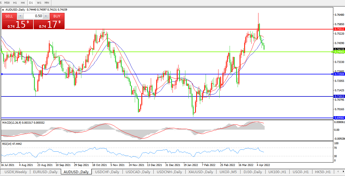 交易策略:0.7400上方看涨,目标0.7550、0.7650