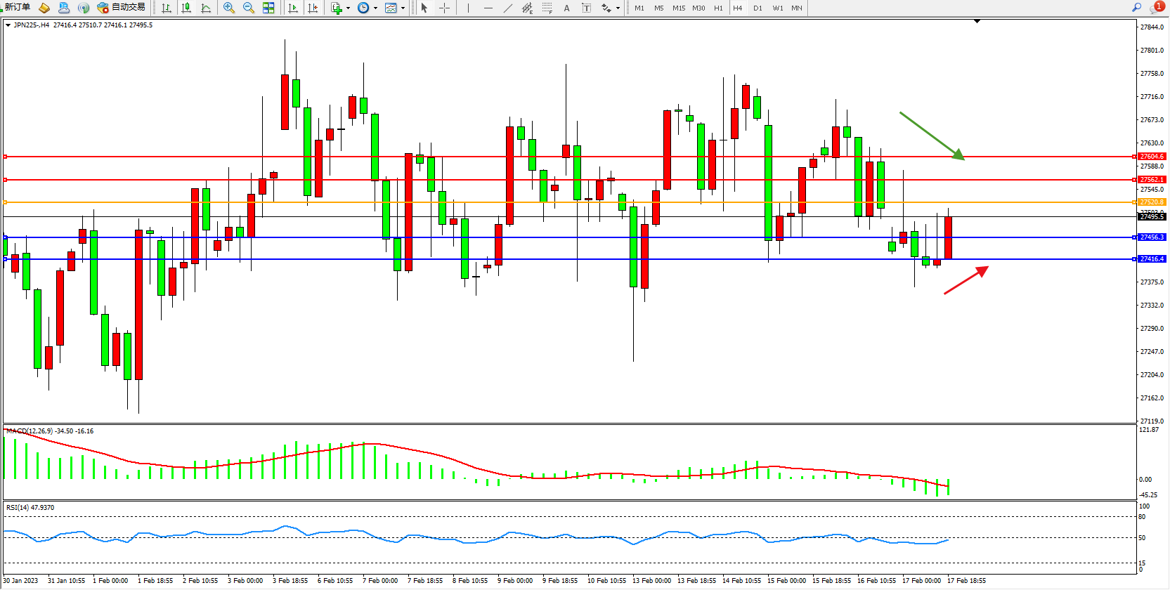 日经指数JPN225——4小时K线图显示: