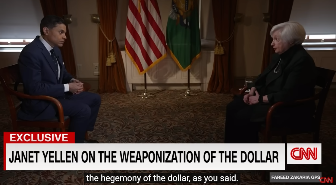 CNN主持人也在采访中提及了中巴之间的本币结算、马克龙访华以后要求欧洲“战略自主”,以及有关美元地位的问题。当主持人问及频繁使用美元作为支撑手段制裁俄罗斯和伊朗会不会有代价时,耶伦表示,使用与美元角色有关联的金融制裁措施面对的风险是,“经过一段时间之后,这可能会破坏美元的主导地位”。她还扯上中俄等国声称,“当然,这些(制裁措施)确实让中国、俄罗斯和伊朗方面产生了寻找替代方案的想法。”