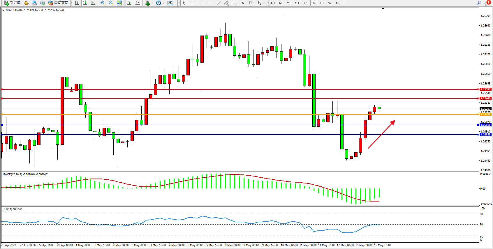 英镑美元GBPUSD ——4小时K线图显示: