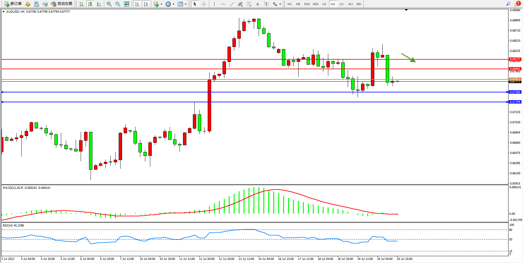 阻力位:0.68002 0.68177