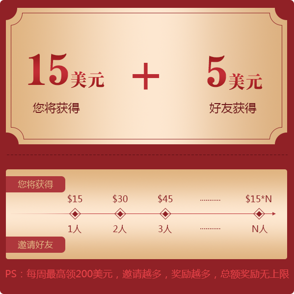 (2)邀请人每邀请一位用户开设激活汇富宝实盘交易账号,并且被邀请人交易满1标准手(可由任意交易品种累计)即可获得15美金奖励;